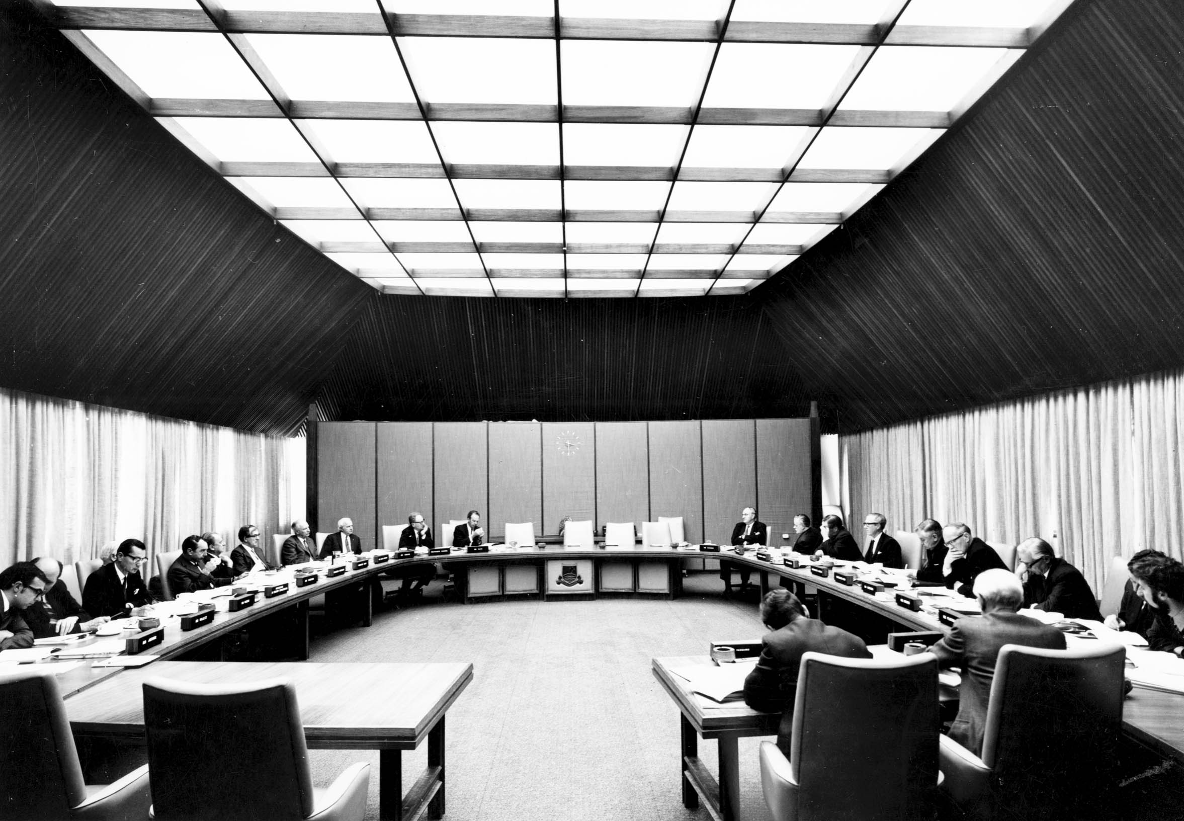 Possibly the most significant space in the Chancelry Tower is the Council Suite, known as the RC Mills Room, which serves as the meeting place for the University Council and can seat up to 50 people. It was named in honour of Richard Charles Mills, an eminent Professor of Economics and Chairman of the University’s Interim Council, who played a leading role in the establishment of the University.